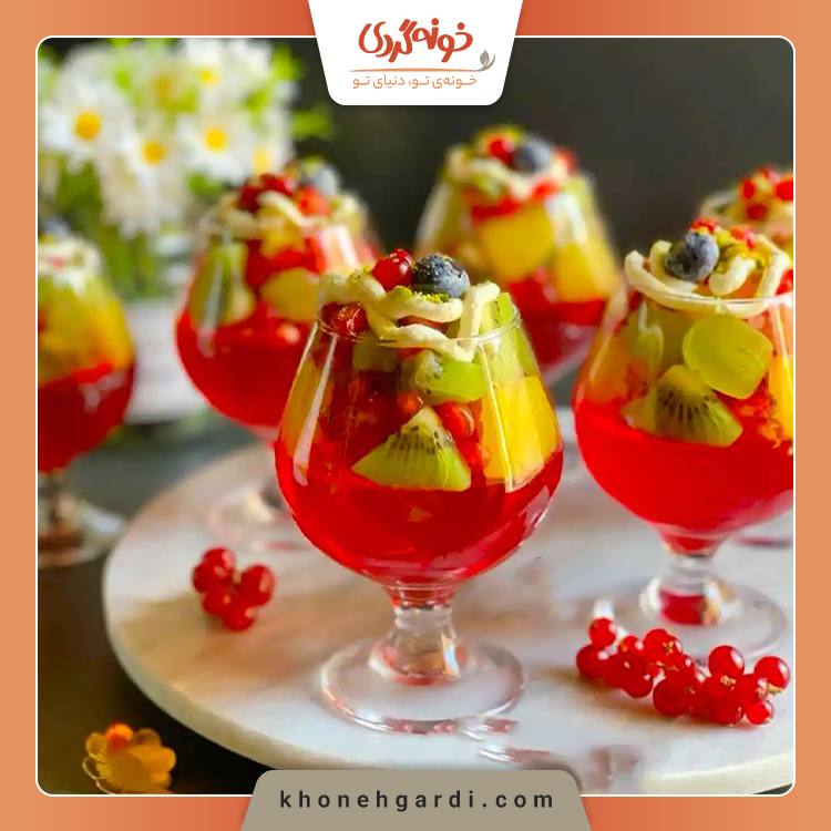 برای مجالس رسمی، بهتر است از لیوان های پایه دار استفاده کنید تا ژله جلوه ی لوکس تری داشته باشد.